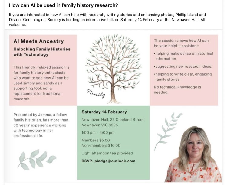 How AI can be used in family history research – Saturday 14 February 2026 @ 1pm