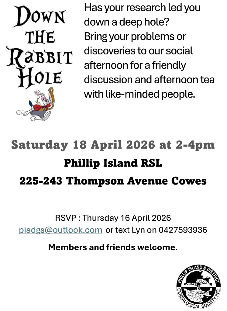 Down the Rabbit Hole: research tips and discoveries – Sat 18 April 2026 @ 2-4pm